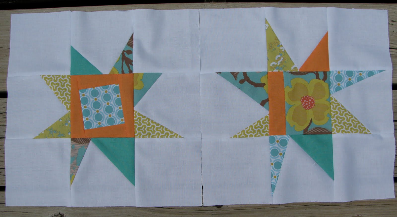 First, I made blocks for Shaina and will just barely get them in the mail to meet the May 31 deadline in the Nittany Block Party. Shaina wanted liberated stars in fabrics she provided. I loved working with the aqua and orange color scheme. What a fun quilt this will make.
